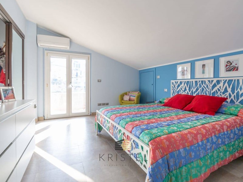 Proseguendo sulle scale si accede alla parte mansardata composta da una camera matrimoniale con cabina armadio, ripostiglio adatto anche ad uso lavanderia, altre due camerette, bagno con finestra e solarium esterno.