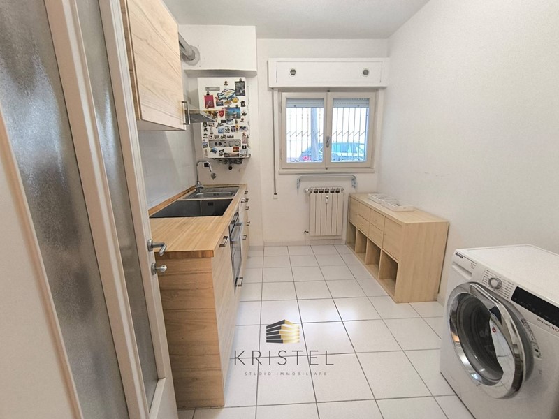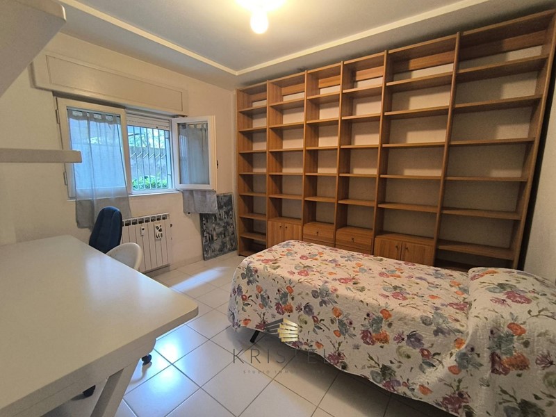 La soluzione si trova al piano terra della scala B del fabbricato e si compone da comodo ed ampio ingresso con armadiatura a sei ante, cucina, due camere da letto e bagno.
