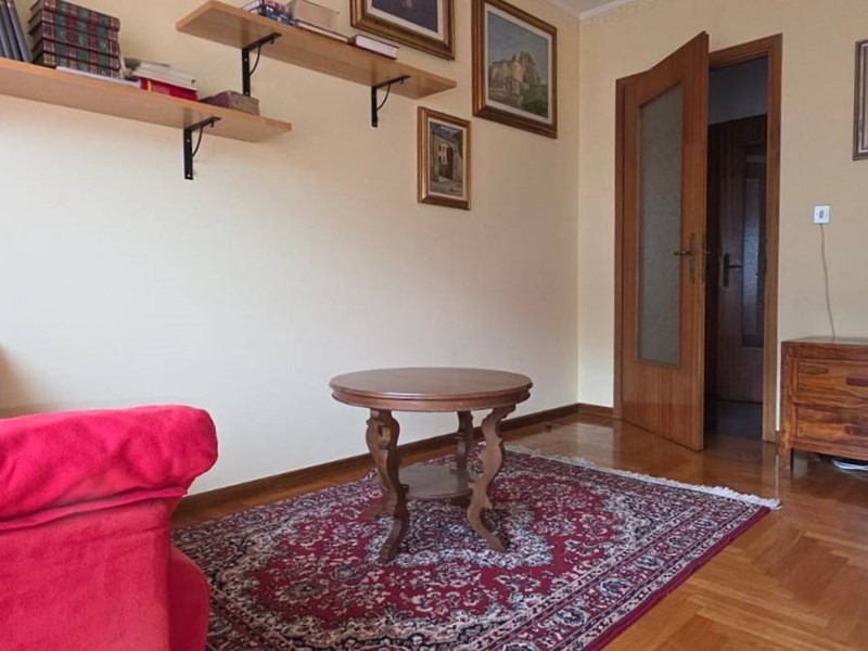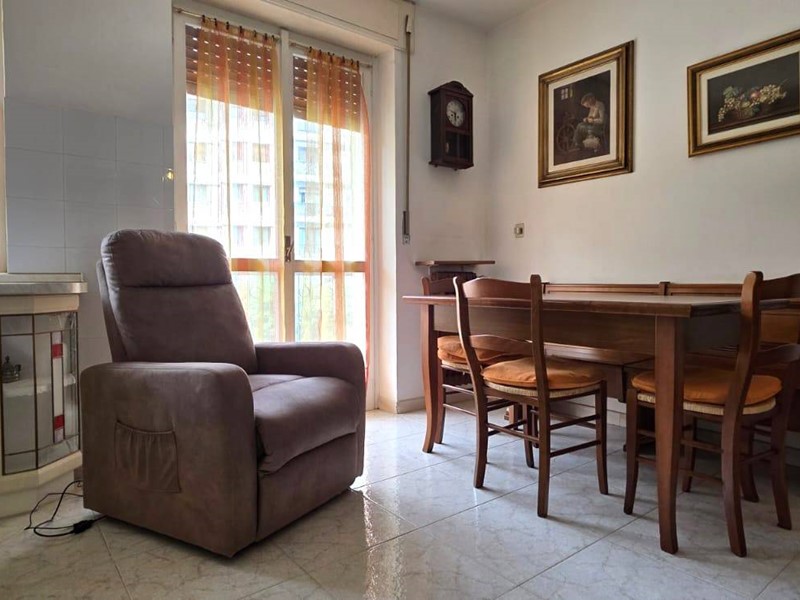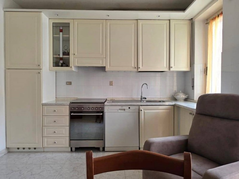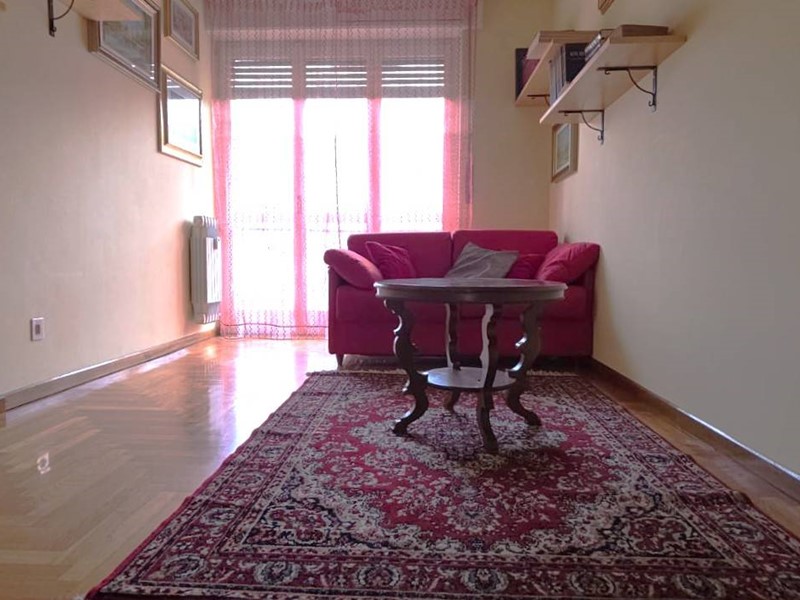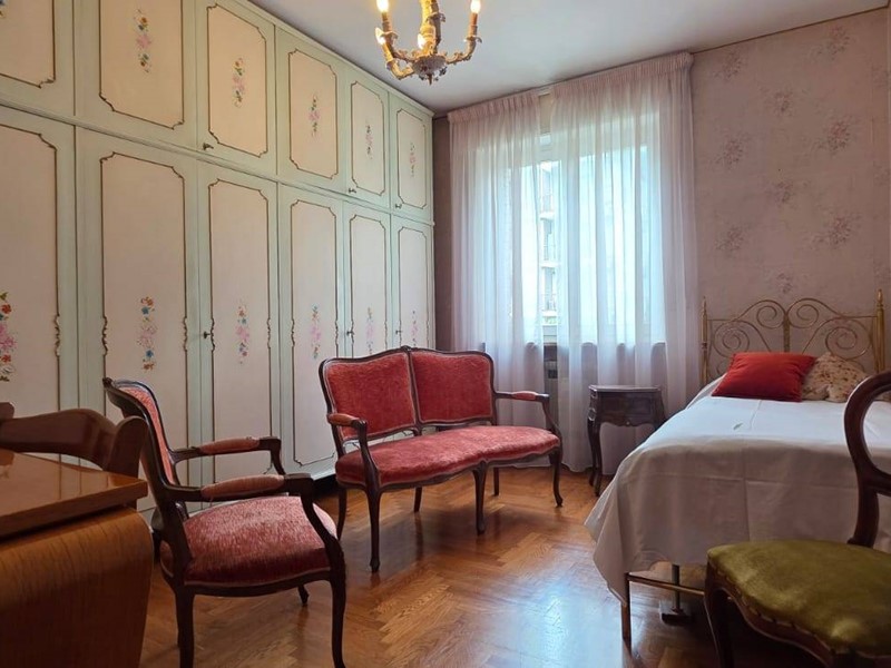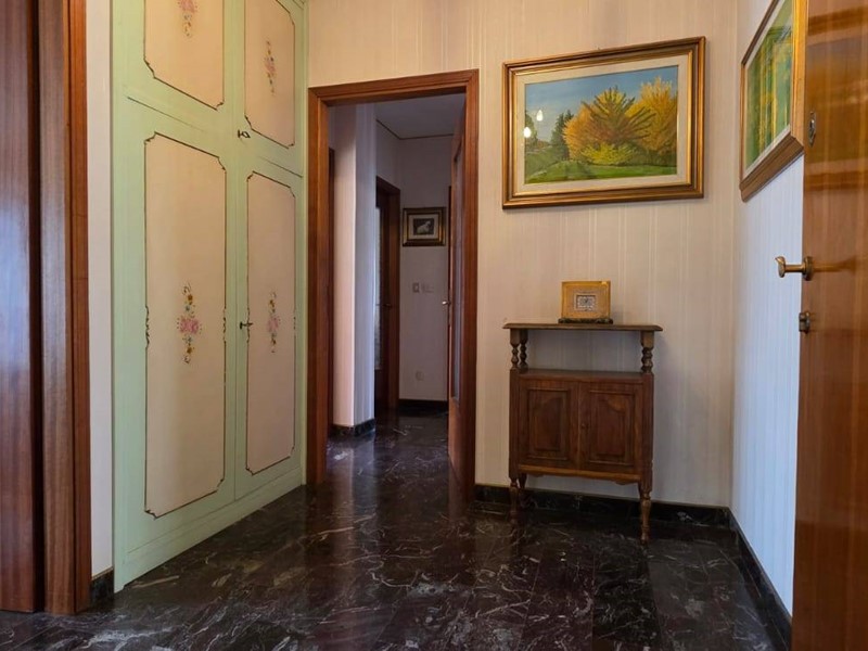 L'elegante atrio condominiale conduce all'ascensore che serve i cinque piani dell'edificio mentre l'appartamento in questione è composto di porta blindata che apre sull'ampio ingresso che funge da disimpegno verso la zona giorno distribuita tra la cucina abitabile, arredata ed equipaggiata, dotata di balcone a nord ed un luminoso soggiorno anch'esso con affaccio sul secondo balcone esposto a sud.