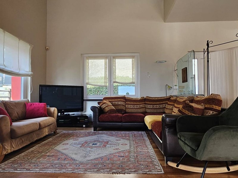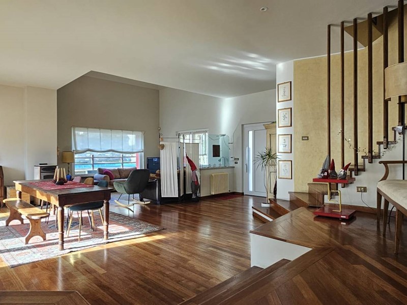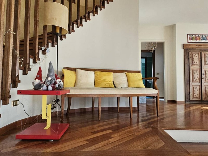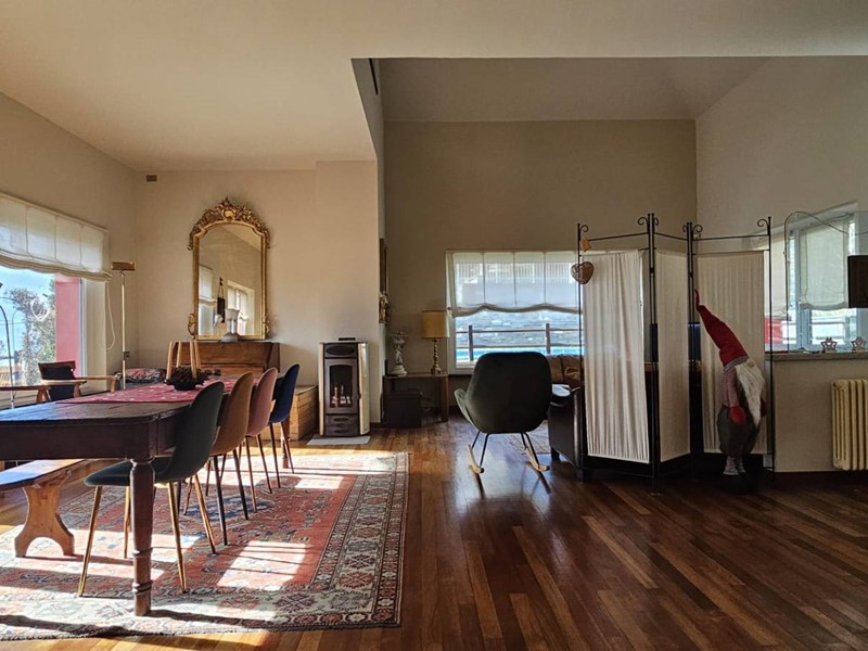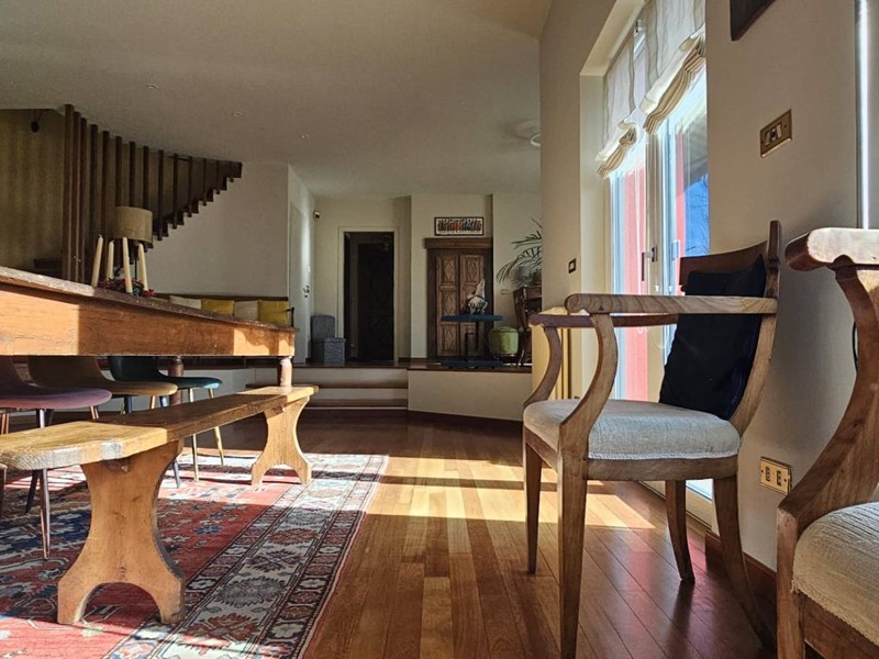 Gli ambienti risultano estremamente luminosi per la presenza di numerose e ampissime vetrate che permettono la vista sul verde circostante e creano una naturale estensione al grande patio da cui si accede alla piscina.