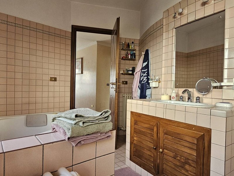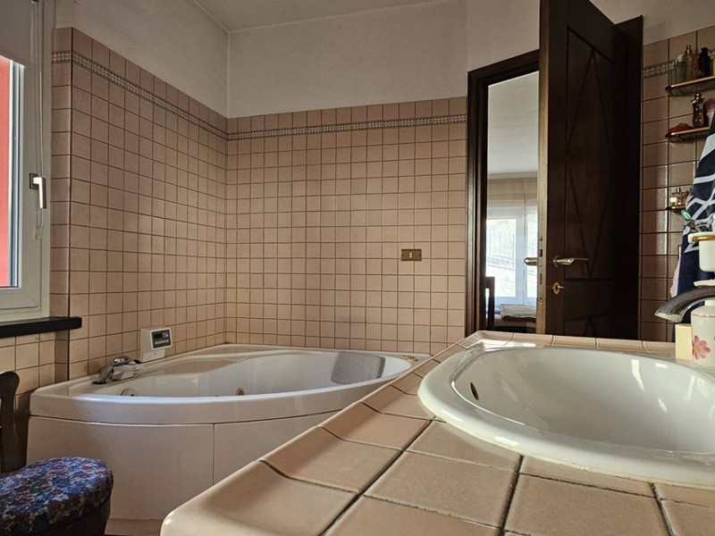Piano terra, mq 150, ingresso su doppio salone con vista su area verde, piscina e città, disimpegno, bagno, cucina abitabile e camera da letto principale dotata di servizio con vasca idromassaggio e cabina armadio privati;