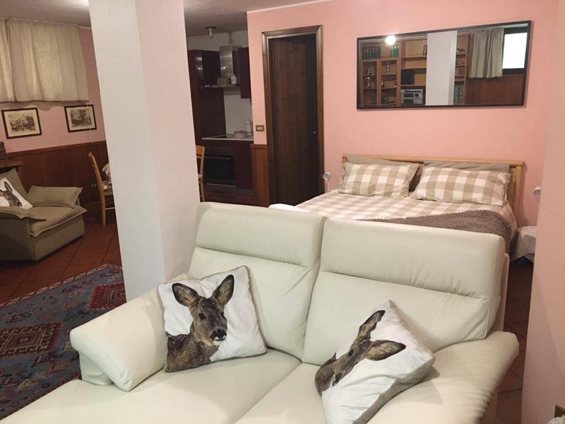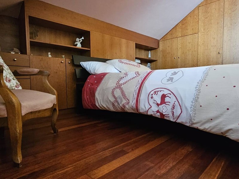 Piano Primo, mq 100, soggiorno, ampia camera da letto matrimoniale con bagno privato, camera con divisorio di arredo che permette la fruizione di due camere separate con i rispettivi ingressi, disimpegno, bagno, ripostiglio e terrazzino panoramico rivolto a sud;