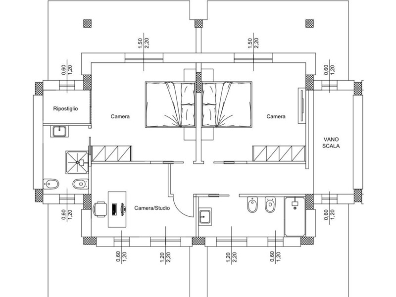 Il piano terra è composto da un ampio box auto per depositare comodamente la sua auto, il piano primo è composto da una lavanderia, un ripostiglio e un'ampia zona giorno con accesso al porticato di proprietà e il piano secondo è composto da due ampie camere da letto, una camera studio, due bagni, un disimpegno un ripostiglio e terrazzini a livello.