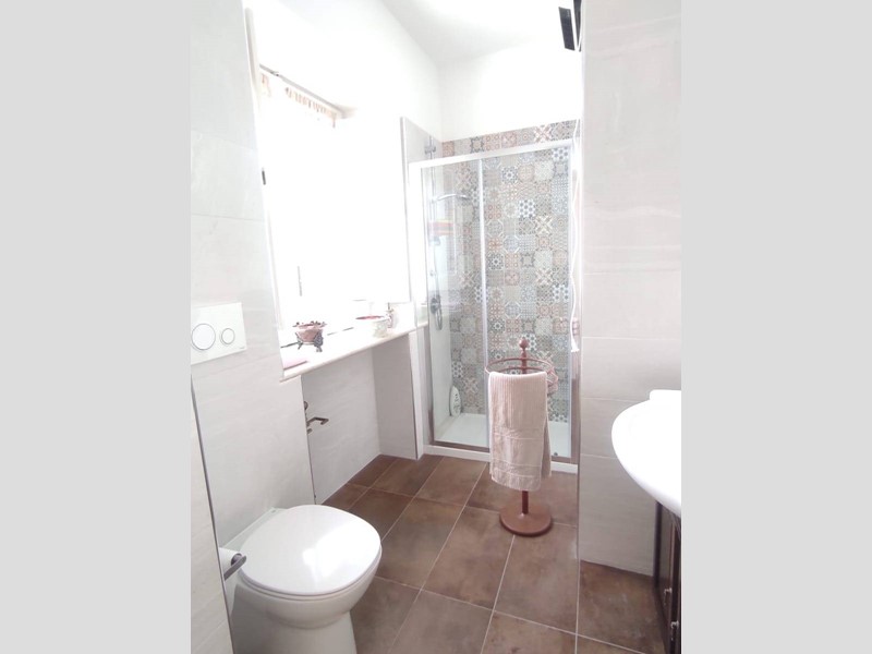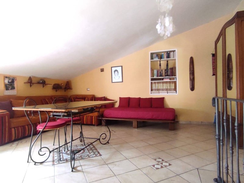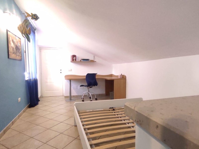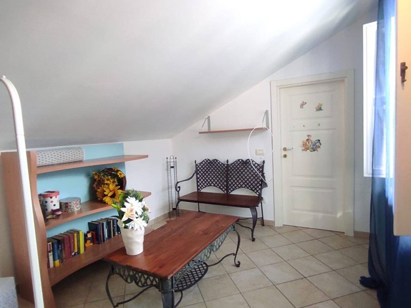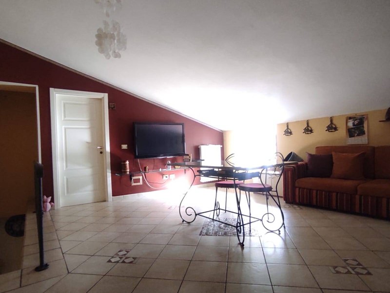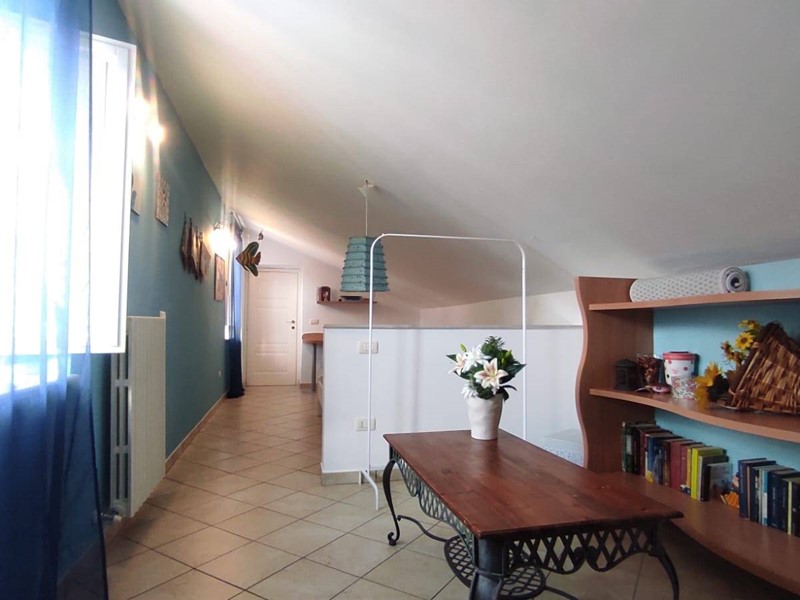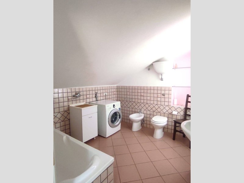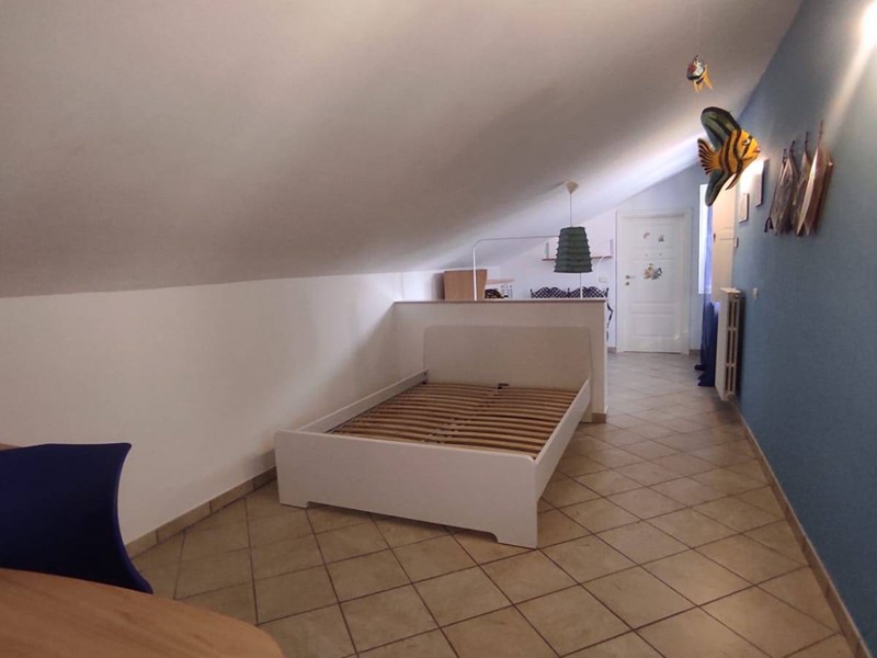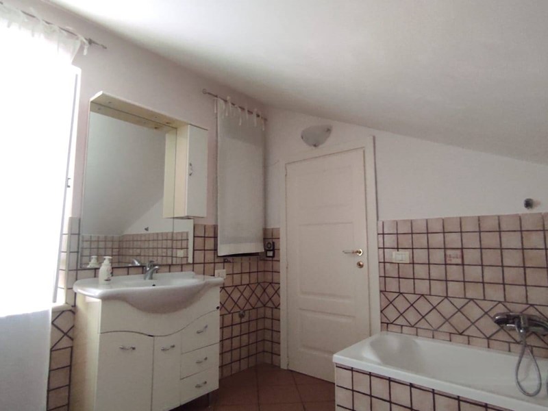 L' appartamento di circa 125 mq si sviluppa su due livelli, al primo piano troviamo un ampio ingresso disimpegno dal quale accediamo ad una cucina abitabile con ripostiglio sottoscala e un bagno con doccia che serve la zona giorno. Salendo le scale accediamo al secondo piano, in parte mansardato, dove troviamo un ambiente multiuso adibito a salone, proseguendo le due camere da letto ampie e luminose, e un secondo bagno con vasca.