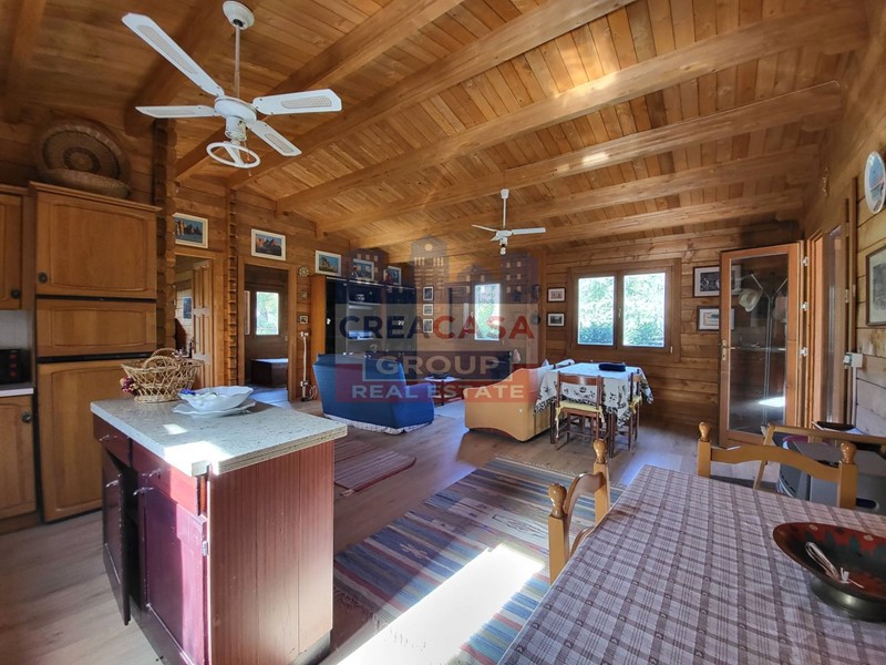 Il contesto in cui ricadono gli immobili, è quello di uno chalet in legno, con adiacente più piccolo magazzino occupato da un doppio