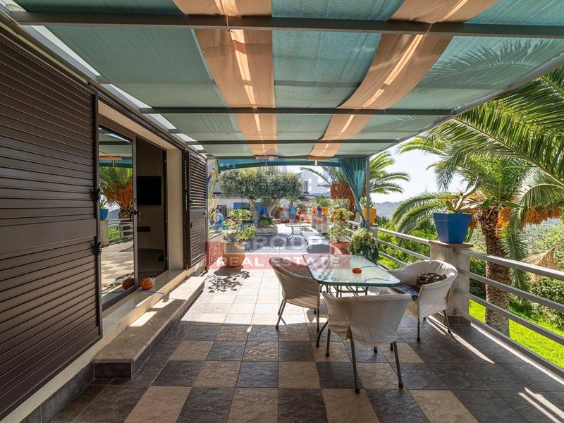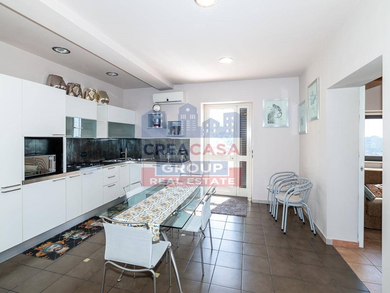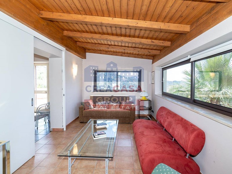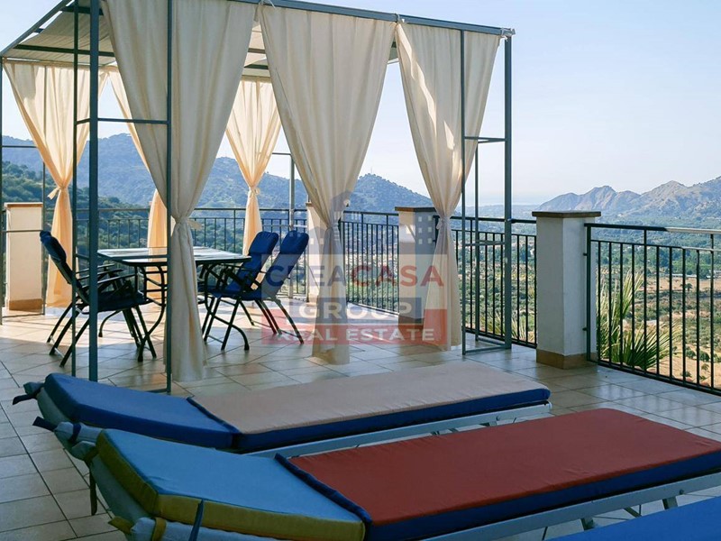 al piano terra luminoso e spazioso soggiorno con angolo cottura, due camere da letto, bagno e due terrazze una con vista sulla valle dell'Alcantara che spazia dalla cima dell'Etna al mare di Giardini Naxos; (ognuna di 40 mq) .