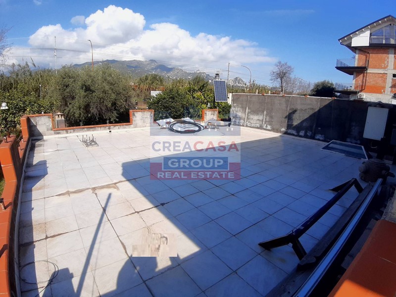 -Appartamento posta al piano primo di mq 71 commerciali è suddiviso come segue: corridoio, soggiorno, salotto, cucina, camera da letto, bagno e due ampi terrazzi uno di 50 mq e uno di 60 mq.
