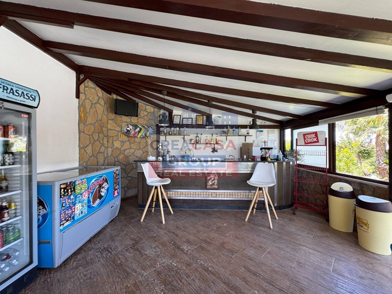 La villetta ha una superficie di mq. 50,00 composta da un soggiorno-cucina, camera da letto, cameretta e Bagno oltre una Terrazza coperta di mq. 50,00 al momento a servizio dell'attività.