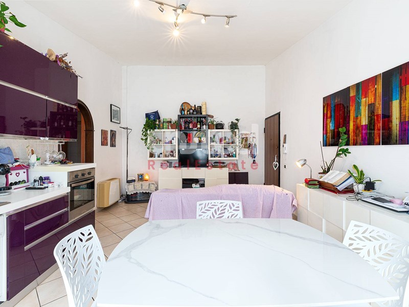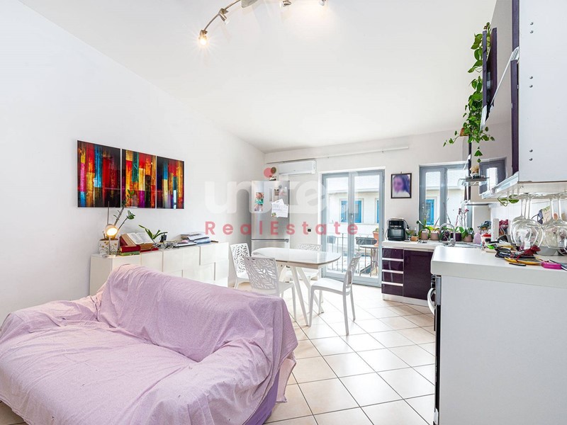 La casa è posta al primo piano ed è internamente suddivisa in ampio soggiorno con cucina a vista, tramite una doppia portafinestra si accede al balcone con esposizione a SUD, che dona alla zona giorno unilluminazione naturale durante tutta la giornata.