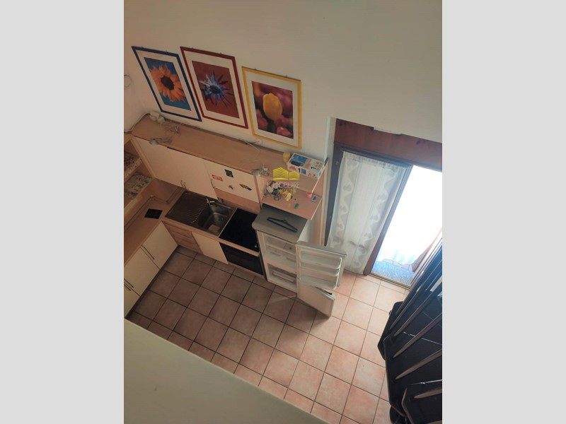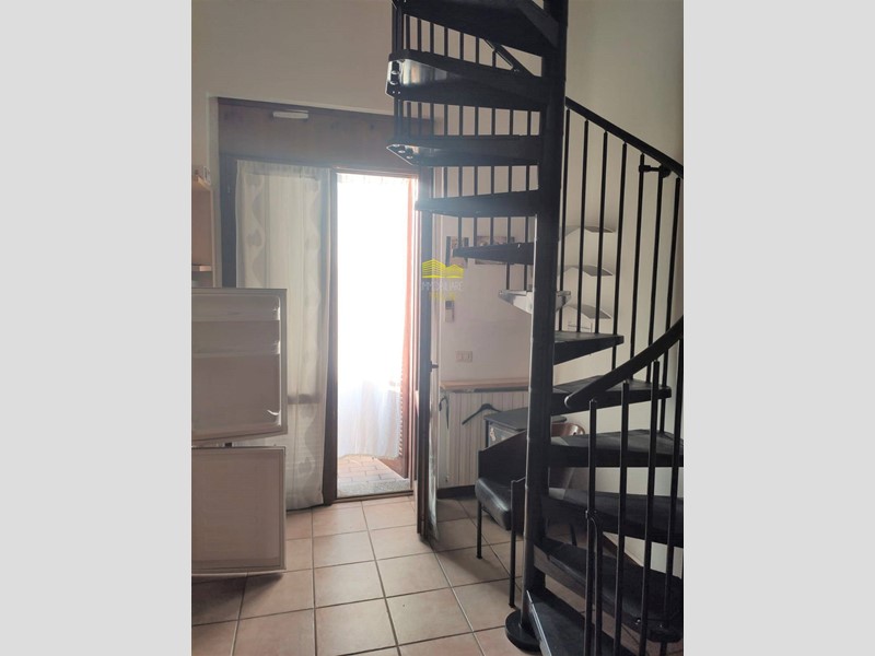 Tramite scala a chiocciola si accede al piano soppalcato dove troviamo ampia zona notte mansardata open space.