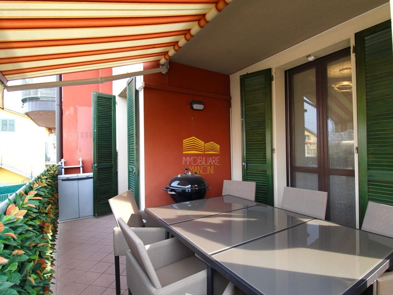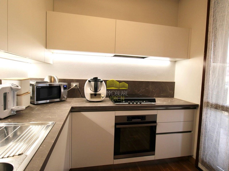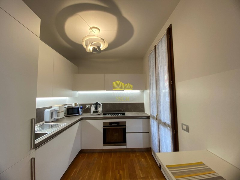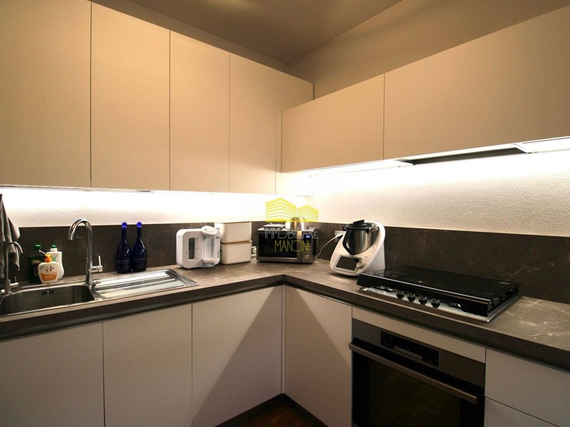 L'appartamento, in OTTIMO STATO, è composto da ingresso in ampia e luminosa zona giorno e cucina A VISTA ma separata negli spazi dotata di led luminosi, con doppio accesso su TERRAZZO di circa 15 mq.