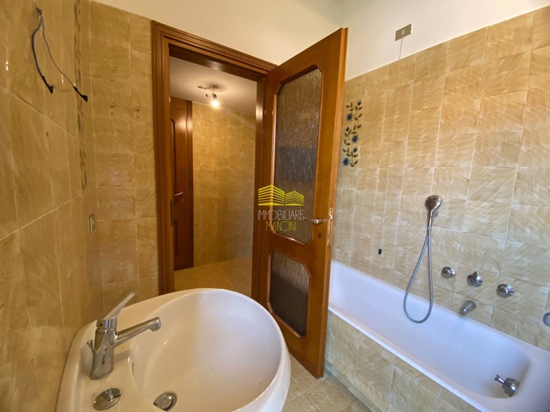 Pavimentazione in marmo in tutta la zona giorno, gres ceramica in bagno e parquet nelle camere.