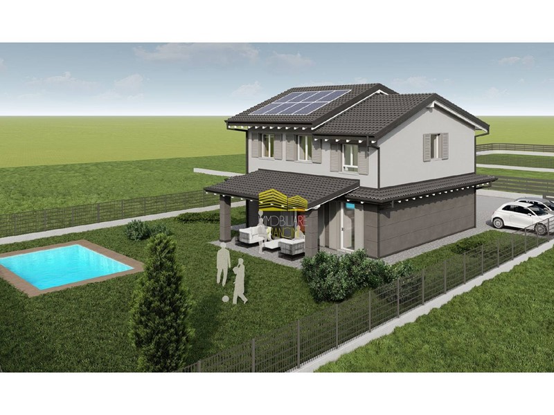 Accessoriata di impianto fotovoltaico ampliabile, pompa di calore già fornita con predisposizione climatizzazione estiva, riscaldamento a pavimento, predisposizione sistema di allarme.