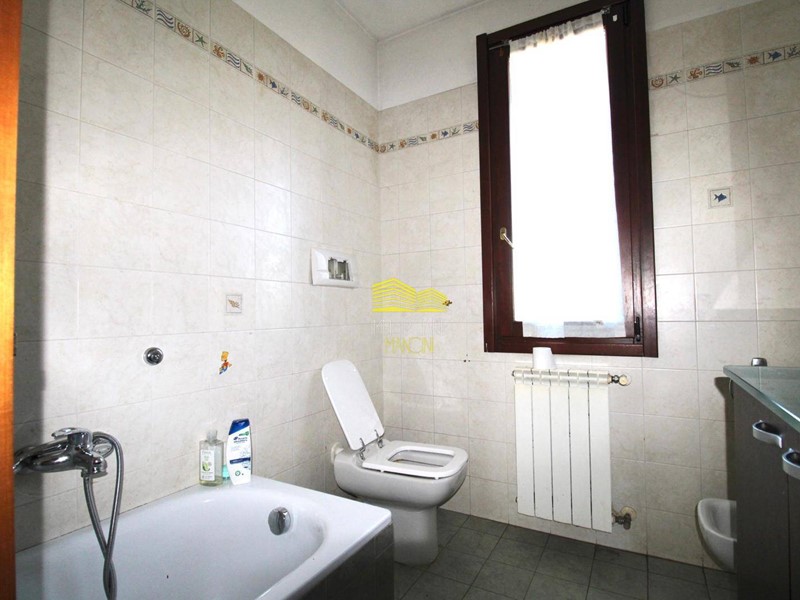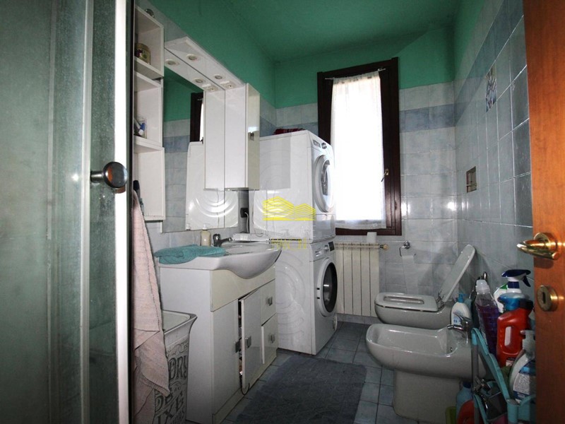 Pavimentazione in gres in zona giorno, gres ceramica nei servizi e parquet in zona notte.