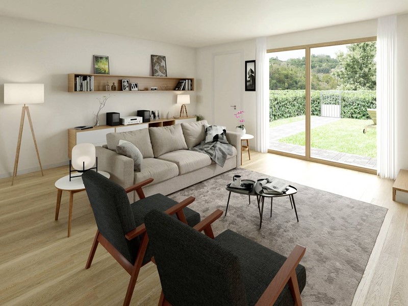 A TREZZO SULL'ADDA , in zona di prestigio circondata dal verde, Immobiliare Mancini propone NUOVE COSTRUZIONI - BILOCALE CON GIARDINO + CANTINA.