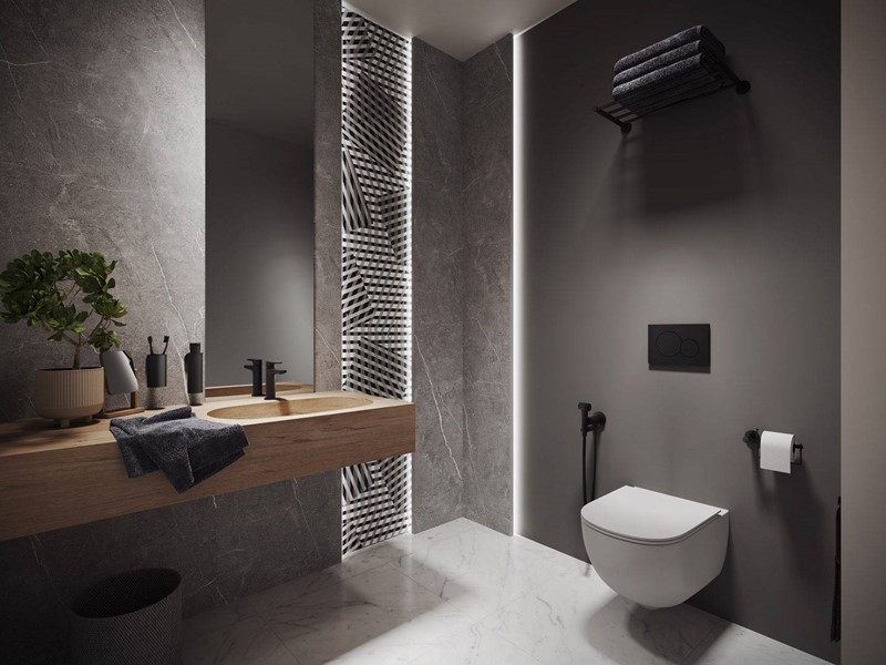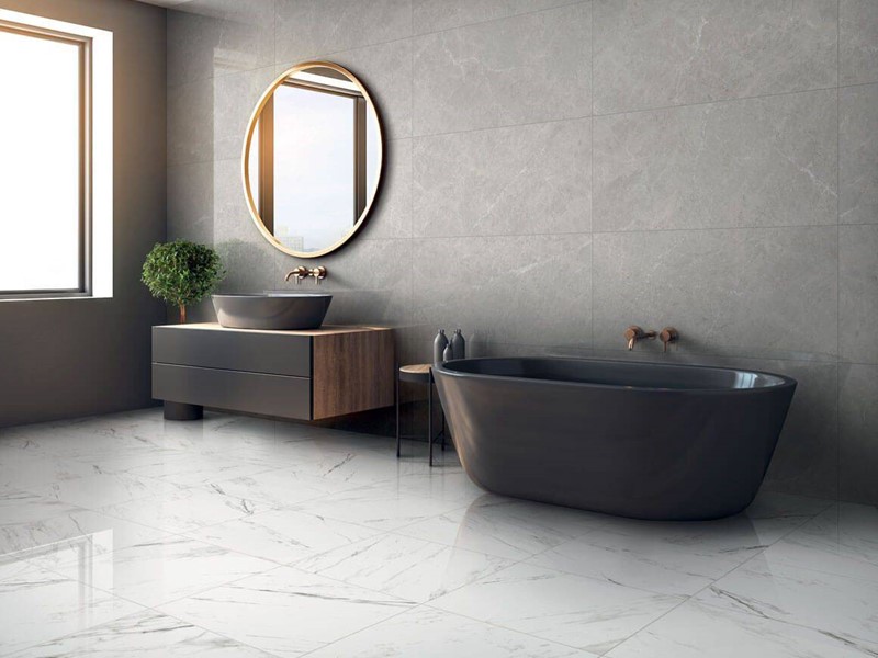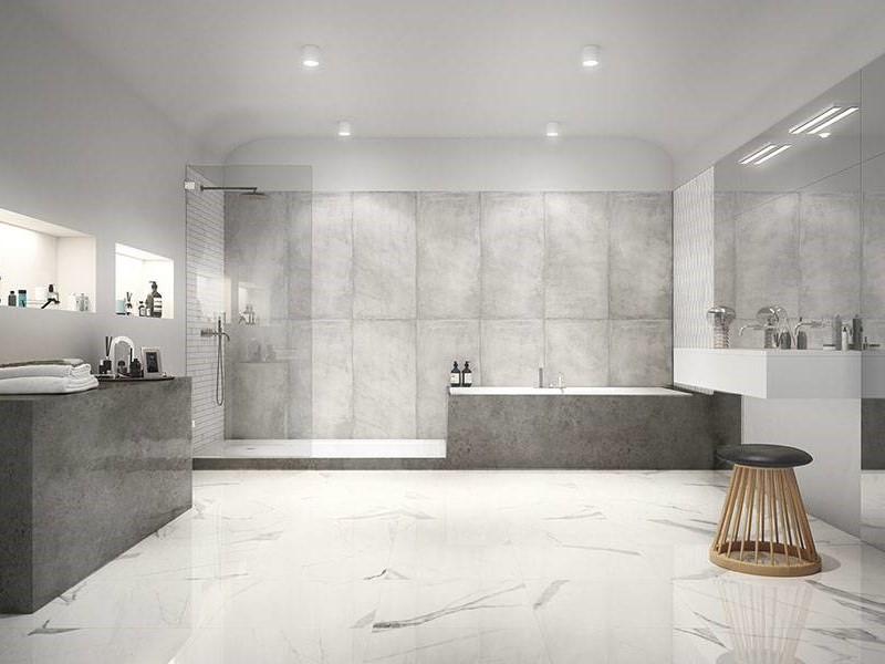 Pavimentazione in gress porcellanato 1° scelta di formato variabile con rifiniture su scelta del cliente finale.