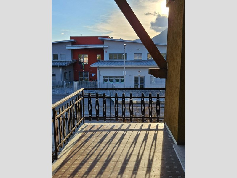 Luminoso soggiorno (24 mq) con affaccio su ampio poggiolo coperto esposto a sud-est