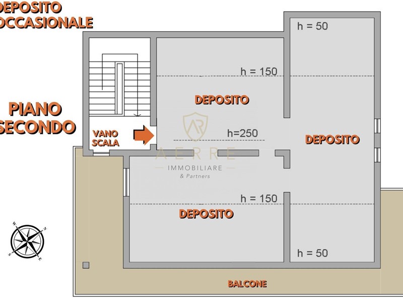 Percorrendo la gradinata comune, si accede a locali di deposito posti al secondo piano, attualmente al grezzo ed utilizzabili come grande ripostiglio; si precisa che lattuale proprietà ha già verificato in passato la fattibilità per recuperare abitativamente tali locali.