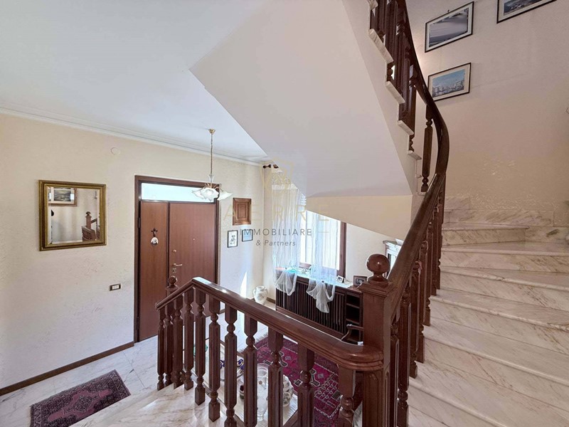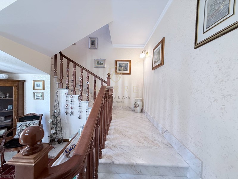 Questi due livelli coprono complessivamente una superficie catastale di 322 mq. Il primo piano si distingue per lampiezza, la funzionalità e leleganza degli ambienti, offrendo un perfetto equilibrio tra comfort e raffinatezza. Laccesso avviene attraverso una importante e pregiata scala in marmo di Carrara, dettaglio che anticipa leleganza degli ambienti. La disposizione degli spazi prevede: