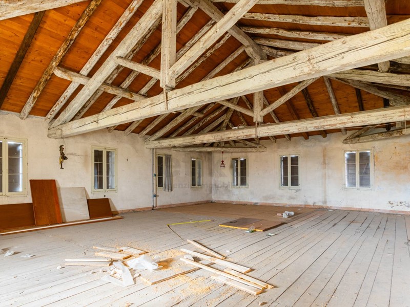 Il secondo piano invece, che conta 110mq, è accessibile dal primo piano tramite un'originale scala a chiocciola, vanta una splendida travatura a vista e delle capriate d'epoca. Grazie all'altezza abitabile e alla generosa metratura, questa zona della casa si può adibire a piacere, ad esempio a mansarda, palestra o sala giochi.