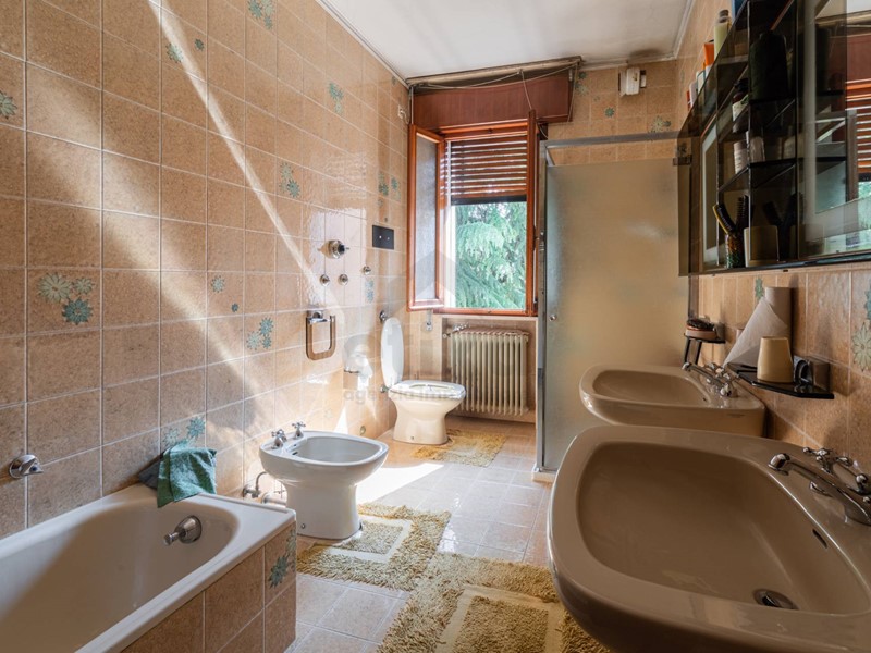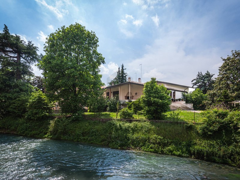 L'abitazione è circondata da un verde giardino di 1200 mq, che si affaccia al fiume su uno dei suoi lati. Situata in una zona residenziale tranquilla e ben servita, la proprietà presenta una vasta metratura ottima per ospitare anche una famiglia numerosa.