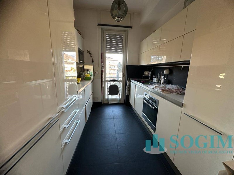 Lappartamento ha una doppia esposizione nord ovest ed è composto dall' ingresso che si apre sul disimpegno che conduce alla cucina abitabile con accesso al balcone e all'ampio soggiorno con zona pranzo, anche esso con affaccio sul secondo balcone.