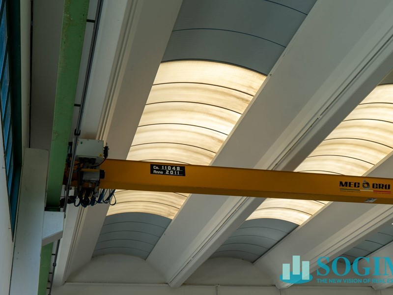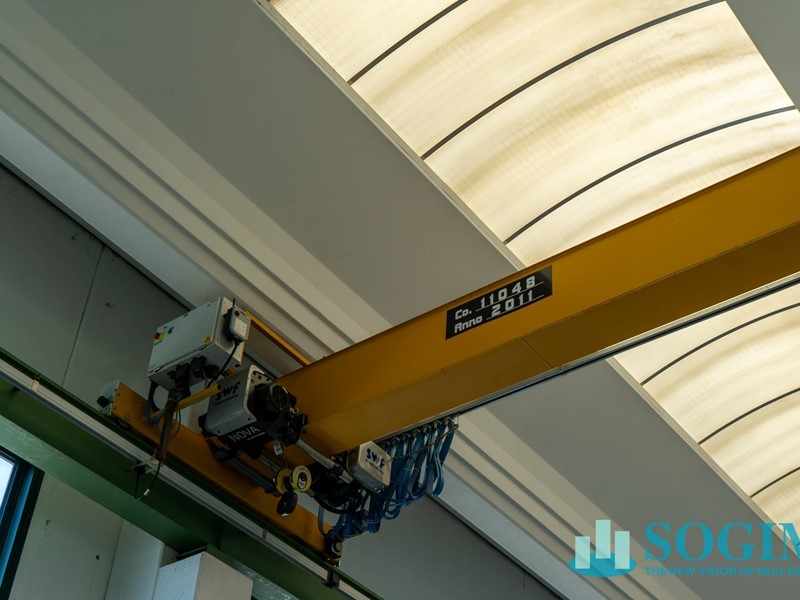 L'immobile è costituito da una superficie di 580 mq con altezza di mt 7,55 sotto trave ed è corredata di un carroponte di portata 3 ton e un ufficio di 30 mq.