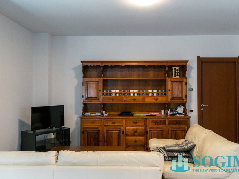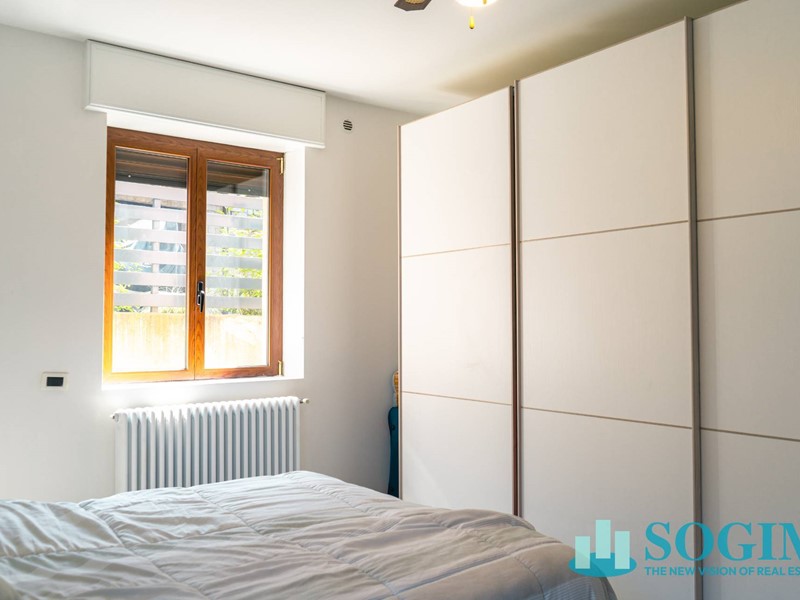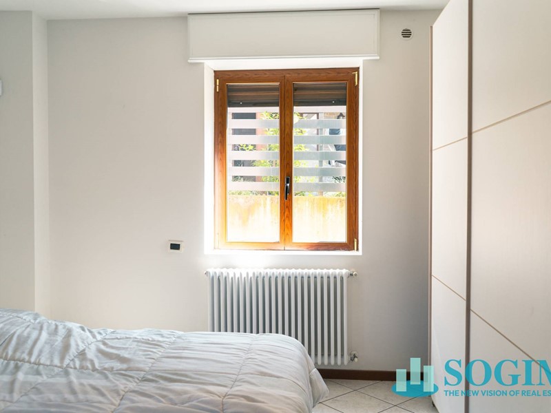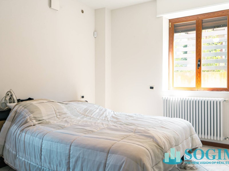 L'appartamento ha una doppia esposizione nord- ovest ed è composto dall'ingresso che si apre sul soggiorno con cucina a vista, munito di due ampie finestre che permettono un ottimo apporto di luce naturale; un piccolo disimpegno conduce alla zona notte costituita dalla prima camera da letto e dal bagno finestrato dotato di doccia.