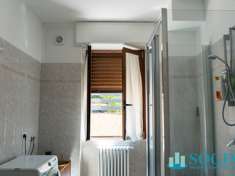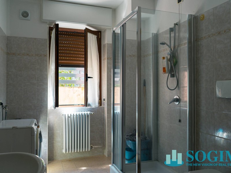 La soluzione è fornita di porte a battente, doppi vetri in legno, tapparelle, termosifoni in ghisa con termovalvole, impianto di allarme . La tipologia di pavimentazione consiste in ceramica per tutti gli ambienti.