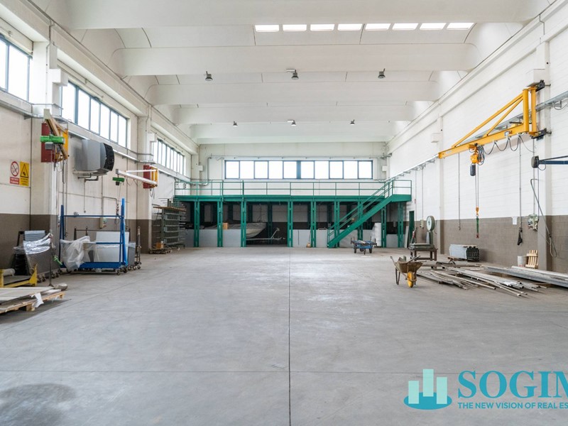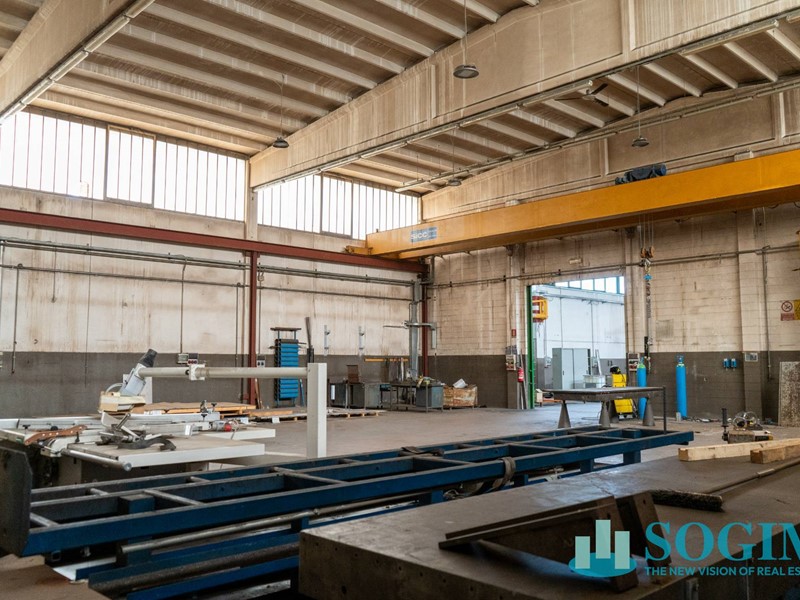 L'unità immobiliare è stato edificato in diverse epoche storiche; la prima parte del capannone di superficie di 900 mq è stata realizzata nel 1958 ed è dotata di un carroponte di portata 5 ton e di uffici distribuiti sia al piano terra che al primo piano per una superficie totale di 370 mq; mentre la parte più recente realizzata nel 2008 ha superficie di 1.200 mq con predisposizione ad installare un carroponte; l'altezza dell'intero stabile è di 6,50 sotto trave.