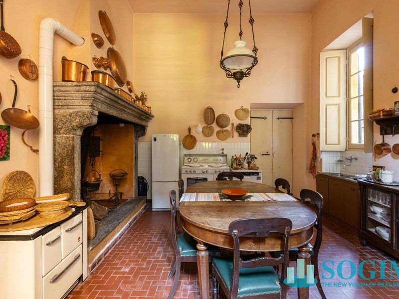 Questa prestigiosa dimora, la cui consistenza copre una superficie complessiva di ca. 1000 mq, ha un'esposizione su tutti e quattro i lati con orientamento sud-est ed è composta da un ampio ingresso principale al piano terra che si apre sull'atrio dal quale si accede al soggiorno, impreziosito da un singolare camino in marmo e comunicante con la sala da pranzo, una prima camera matrimoniale con bagno en suite ed uno spazio versatile e personalizzabile secondo i propri gusti, dotato di un peculiare focolare . Proseguendo verso nord, si accede ai locali di servizio costituti da un ampia cucina ove padroneggia un maestoso camino risalente alle origini, uno studio adibito a piccolo archivio con affaccio sull'esterno oltre vani accessori quali una dispensa e un deposito .