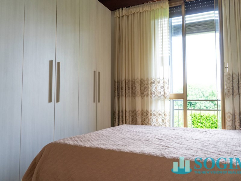 L'appartamento ha una doppia esposizione sud-est ed è composto dall'ingresso che si apre sulla cucina abitabile con affaccio sul comodo balcone comunicante con il luminoso soggiorno; un piccolo disimpegno conduce alla zona notte costituita dal bagno e da due camere da letto che dispongono di un terrazzino dedicato e munito di veneziane che garantiscono privacy e riservatezza .