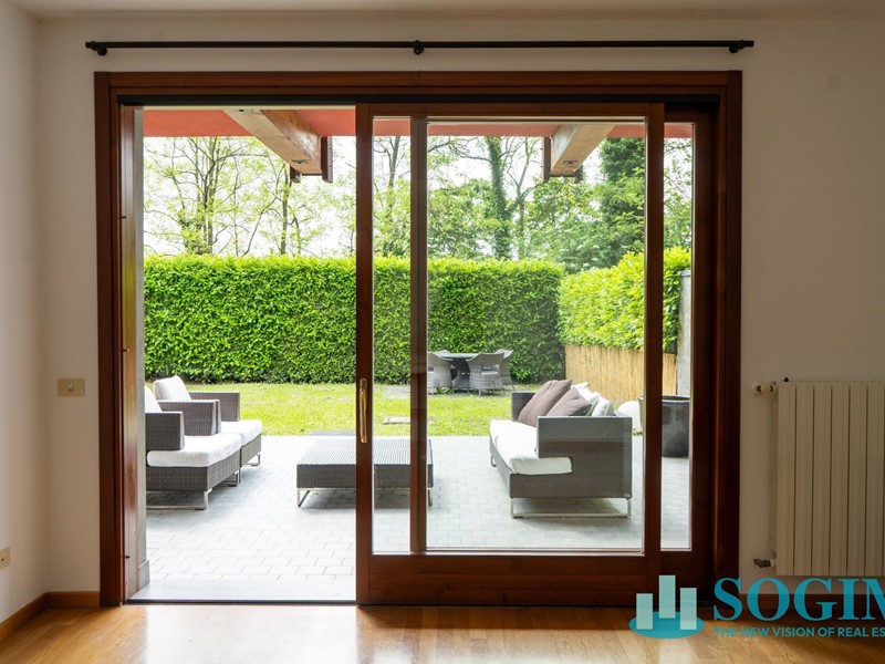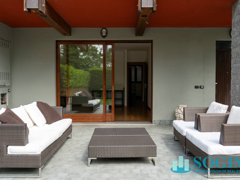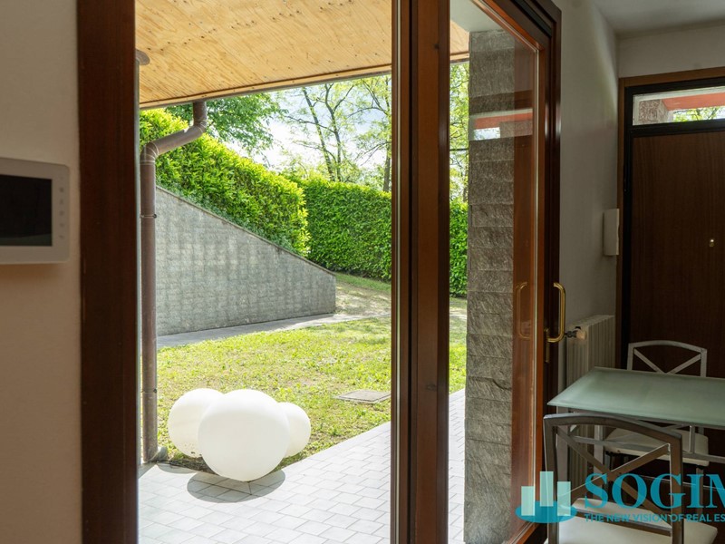 L'appartamento, posto al piano primo sotto strada di questo stabile di recente edificazione, ha una doppia esposizione sud- est ed è composto dall'ingresso incorniciato da un grazioso portico dal quale si accede alla zona living dell'abitazione dotata di cucina abitabile e un ampio soggiorno con affaccio sul dehors e sul giardino ove trascorrere piacevoli momenti ludici e di convivialità .
