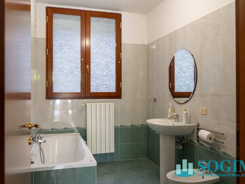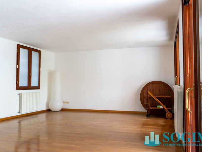 La soluzione è munita di porte a battente, infissi in legno doppio vetro, porta d'ingresso blindata, termosifoni in ghisa, videocitofono. Il parquet di una gradevole colorazione naturale costituisce il fil rouge dell'abitazione coprendo tutta la superficie ad eccezione del bagno in cui viene lasciato spazio alla ceramica.