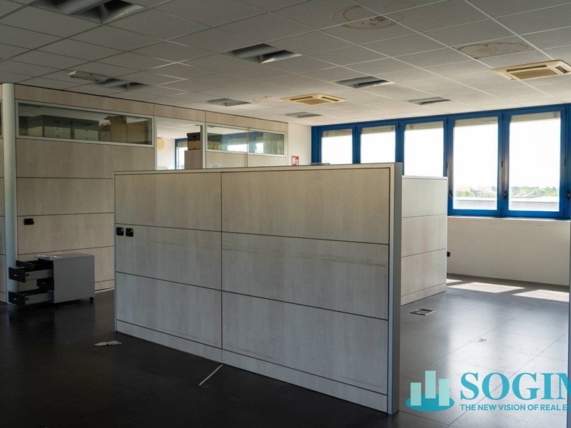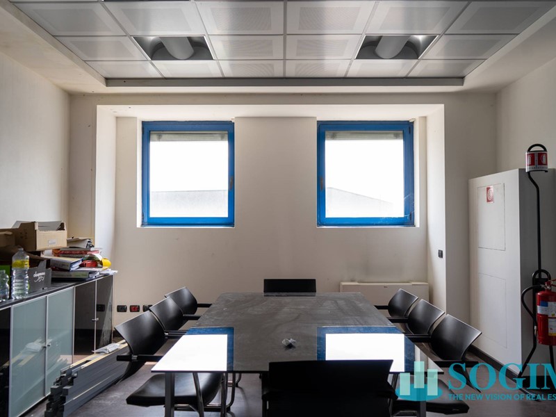 Al piano secondo si collocano un ripostiglio di mq 32 ca e due stanze destinate ad uso ufficio di mq 24 e 33.