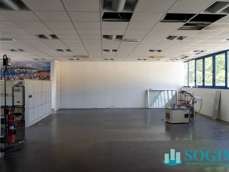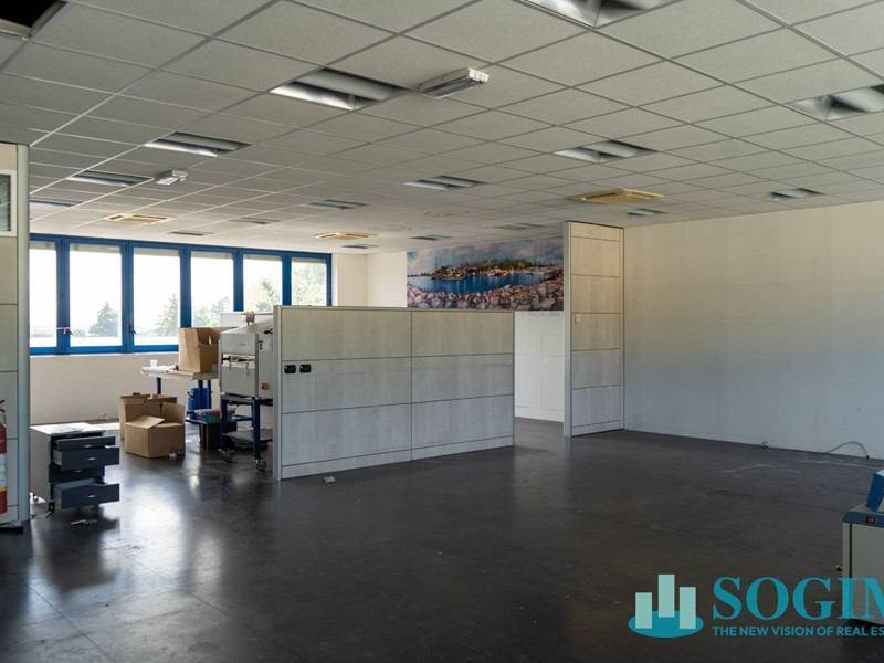 La palazzina uffici si sviluppa su due livelli di cui il piano primo è composto da un laboratorio di mq 130 ca e due uffici di rappresentanza rispettivamente di mq 20 e 27 ai quali si aggiungono una piccola sala d'attesa e i servizi.