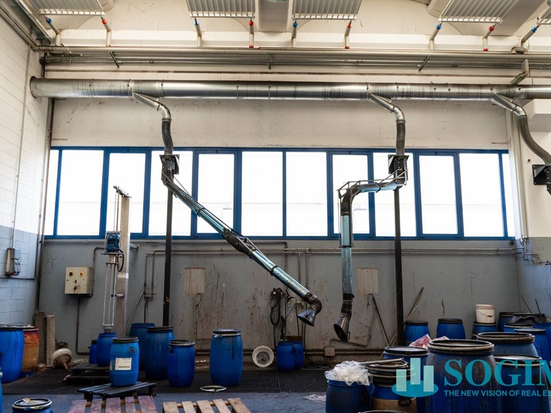 L'immobile è completo di ogni impianto risalente all'epoca di realizzazione, allarme, impianto di aspirazione, riscaldamento con termostrisce nei locali produttivi e pompe di calore caldo freddo negli uffici, pavimento flottante nella palazzina di rappresentanza.