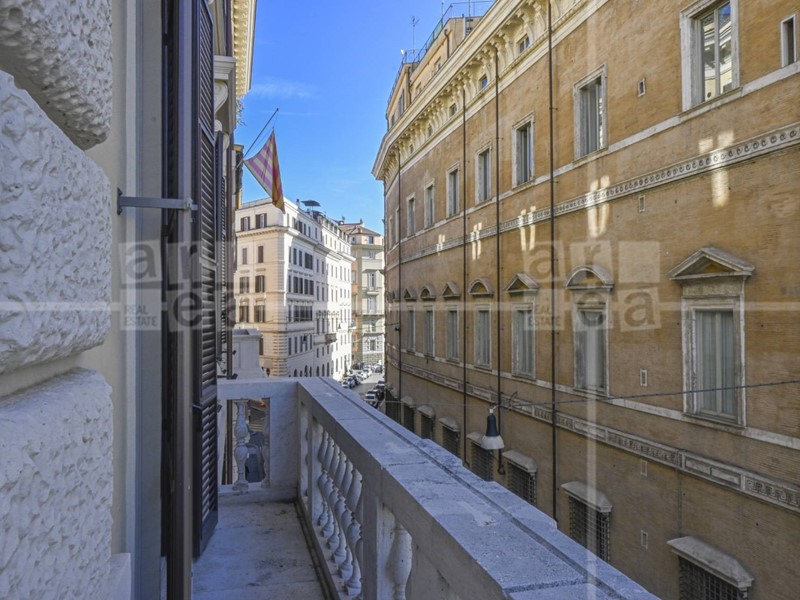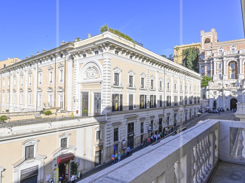 Ci sono 3 balconi perimetrali che mirano sulla via principale con visuale su Piazza Venezia.