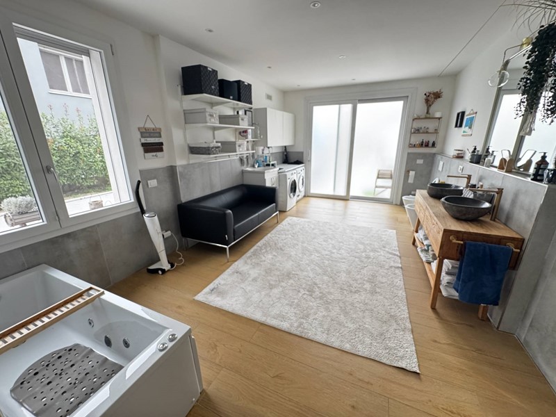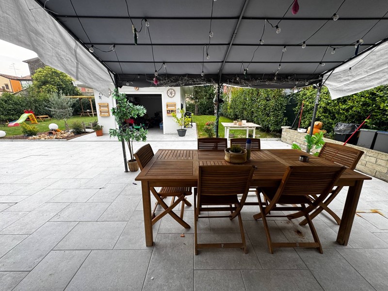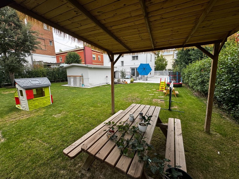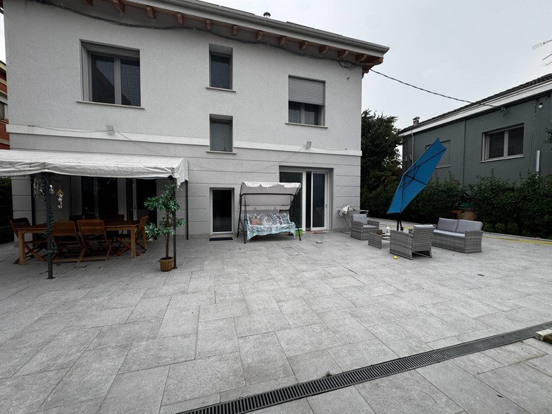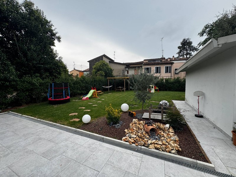 Completano l'immobile il Bassocomodo ad uso Garage, il Giardino Privato e un'ampia area cortiliva pavimentata.