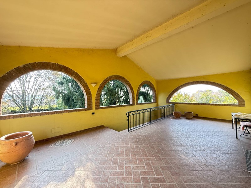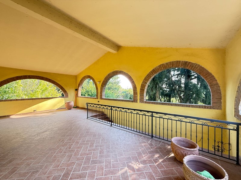 Dal Piano Terra si accede al Primo Piano dove troviamo l'ampio Terrazzo di 40 mq., da cui si entra all'Interno così composto: Ingresso, Soggiorno, Cucina Abitabile, disimpegno, 2 Camere da letto Matrimoniali, Stanza Singola con Balcone e Bagno.