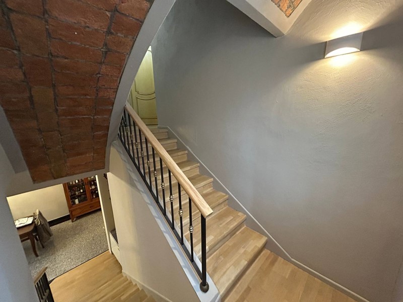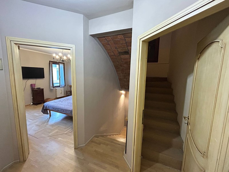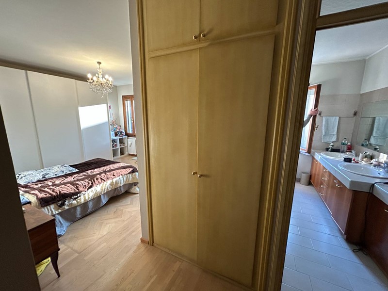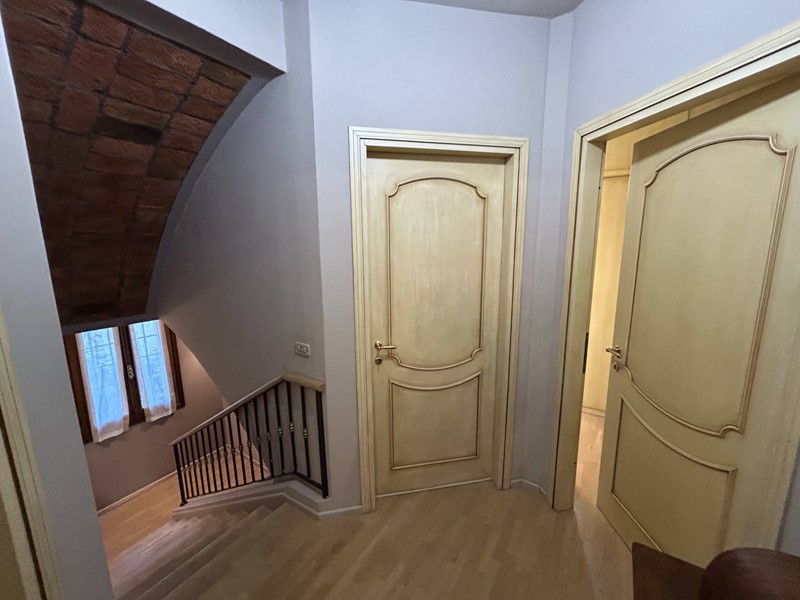 Con scala in legno accediamo al Primo Piano dove troviamo: disimpegno, un'ampia Camera da Letto Padronale con Bagno Privato e Cabina Armadio,