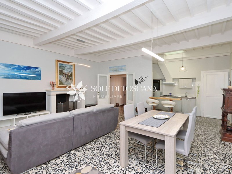 Descrizione Interna: L'appartamento, situato in un edificio storico del XIV secolo, è stato oggetto di una ristrutturazione alcuni fa mantenendo il fascino dell'epoca. Il soggiorno open space si apre sulla piazza principale, mentre la zona notte comprende tre camere da letto con vista panoramica e un bagno con doccia.