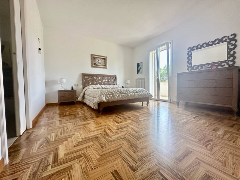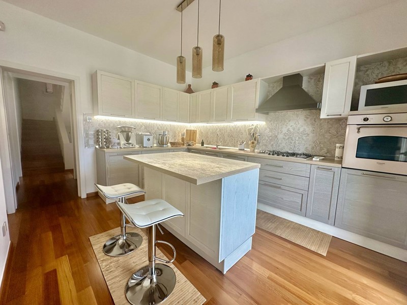La soluzione si sviluppa su tre piani e dispone anche di un ulteriore vano tecnico che permette di accede sull'area solare. Al piano terra troviamo un elegante soggiorno arricchito dalla presenza di un camino "Piccolomi" e di un raffinato parquet "siam teak" che rendono l'ambiente caldo e di classe, un pratica cappottiera a muro dona maggiore funzionalità all'immobile , mentre una raffinata porta a scrigno bianca divide il tinello dalla cucina . Bagno a servizio della zona giorno .Al piano superiore invece troviamo una luminosissima camera matrimoniale con bagno privato dotato di box doppio e pratica cabina armadio , vi sono poi altre due altre camere da letto, secondo bagno con vasca e ripostiglio . La pavimentazione della zona notte è impreziosita dal parquet di ulivo che con le sue sfumature rende l'ambiente accogliente .Ogni camera è dotata di termostato per regolare autonomamente le temperature e tutti gli ambiente dispongono di porta finestra e balcone . Sopra troviamo invece un vano tecnico che ospita un sistema avanzato per la gestione dell'acqua l'accumulazione di energia e la connettività essenziali per l'efficienza energetica.
