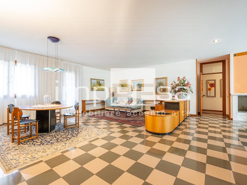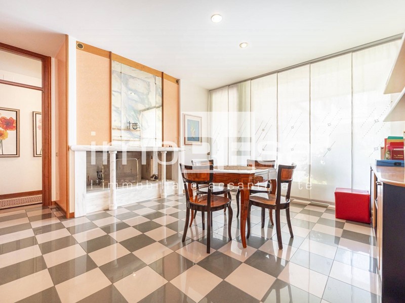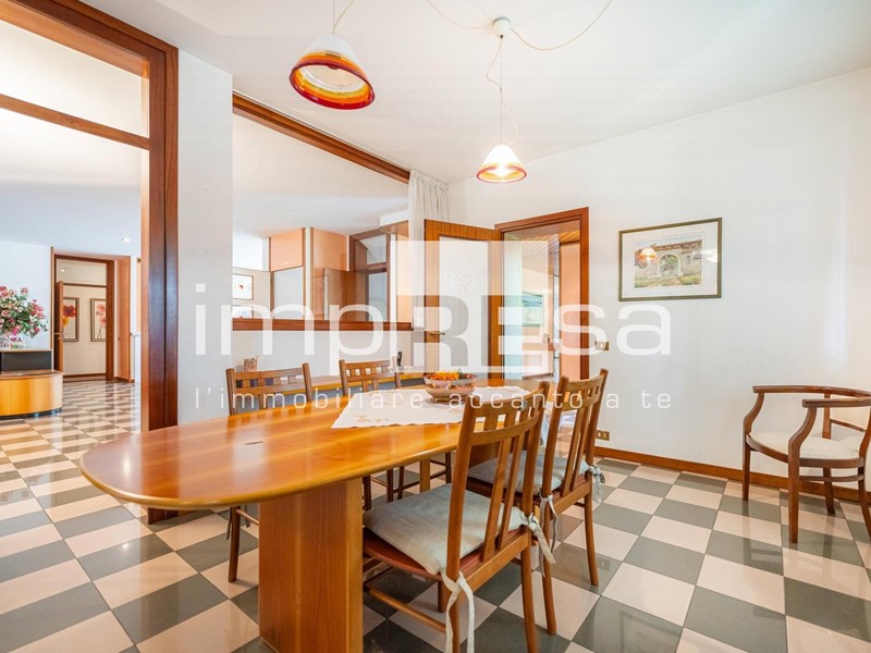 Al piano terra di mq. 217 ingresso, ampio salone con sala pranzo completa di caminetto ad aria e uscita verso il porticato esterno, grande cucina separata e arredata, due bagni, tre grandi camere matrimoniali complete di armadi su misura.