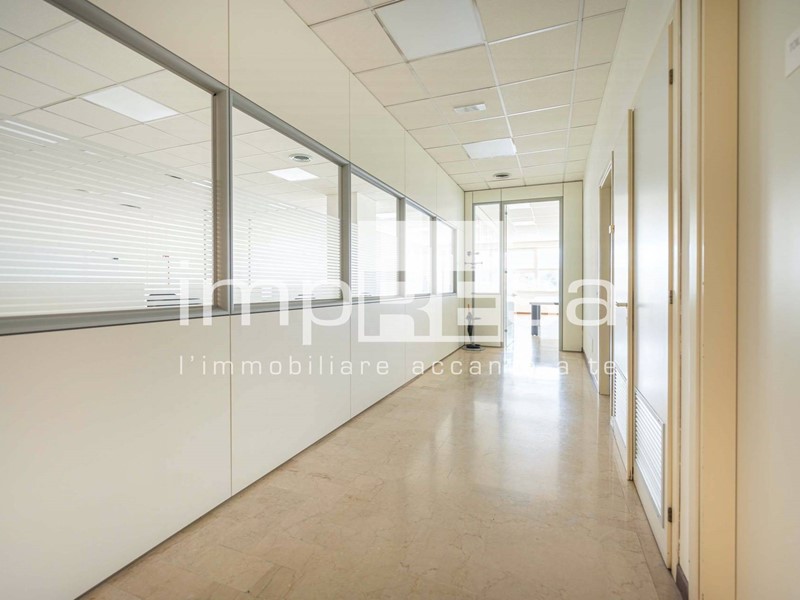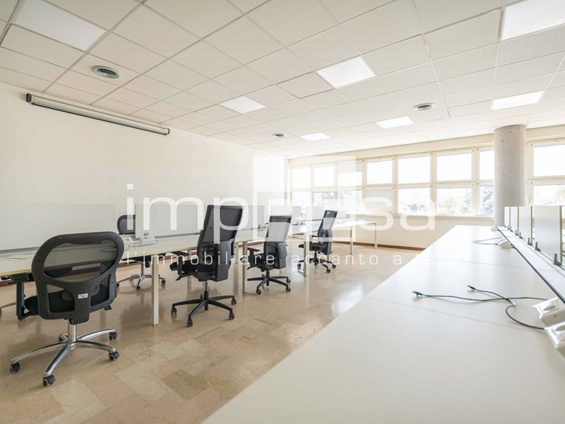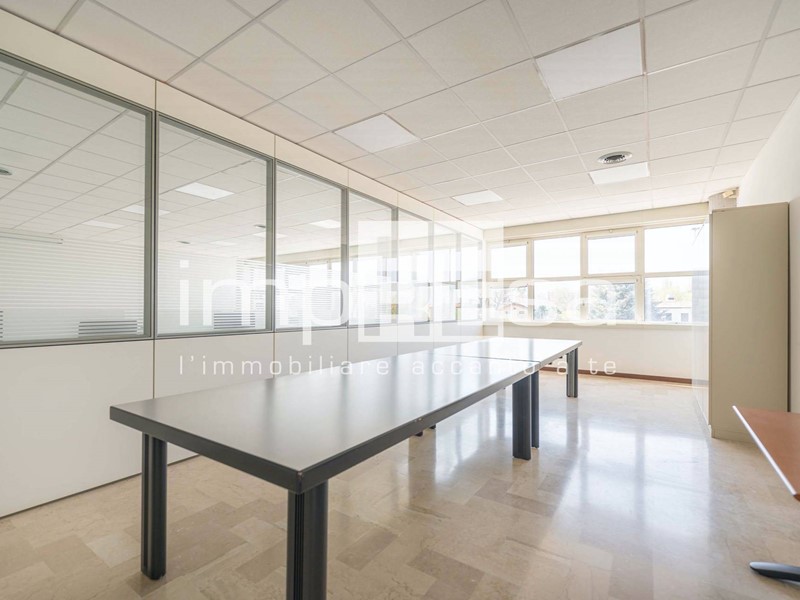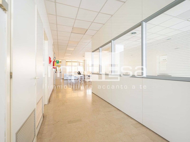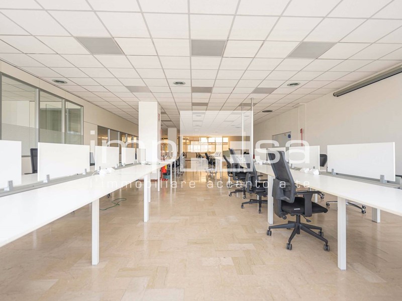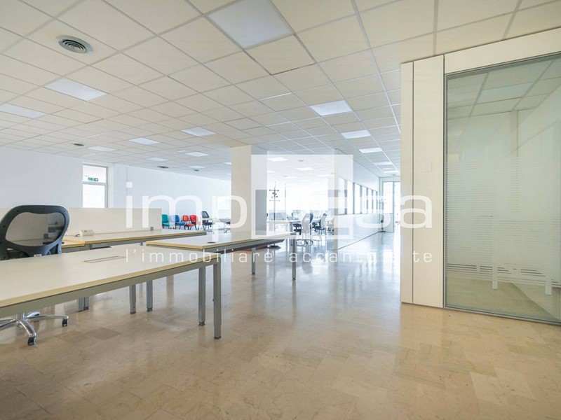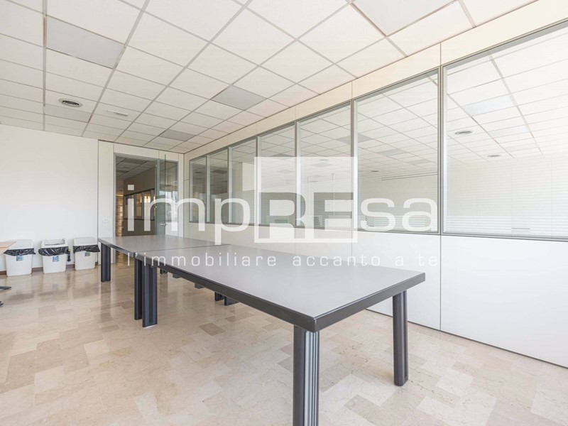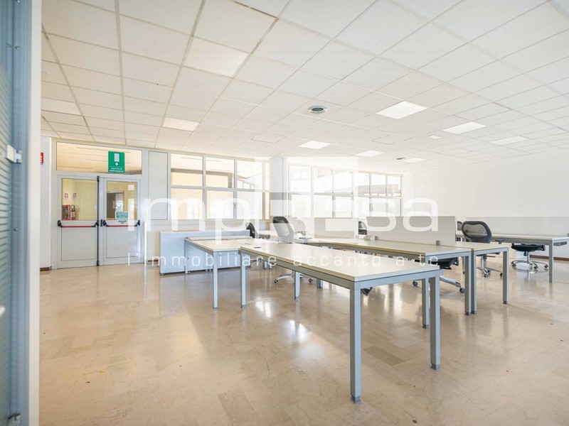 Grande sala operativa/direzionale già arredata, sala riunione oltre a zone funzionali, locali tecnici e bagni con antibagni (2 in totale).