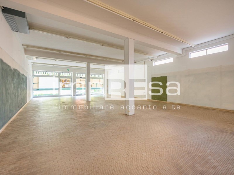 Negozio al piano terra di mq. totali 299 composto da un'area openspace con accesso con vetrate lungo il lato Est, spogliatoio, bagno e anti bagno più magazzino e ripostiglio all'interno con uscita sulla corte retrostante.