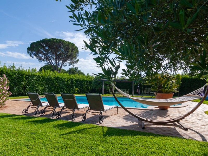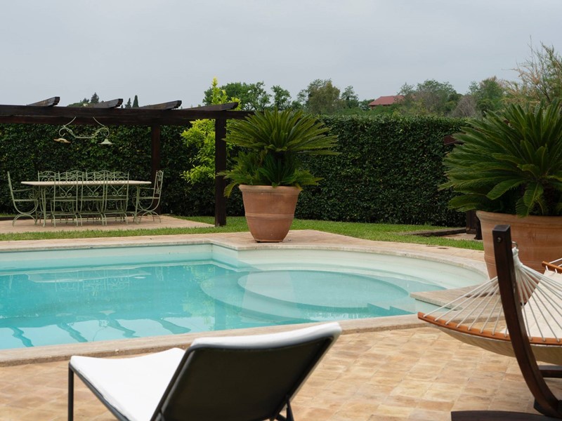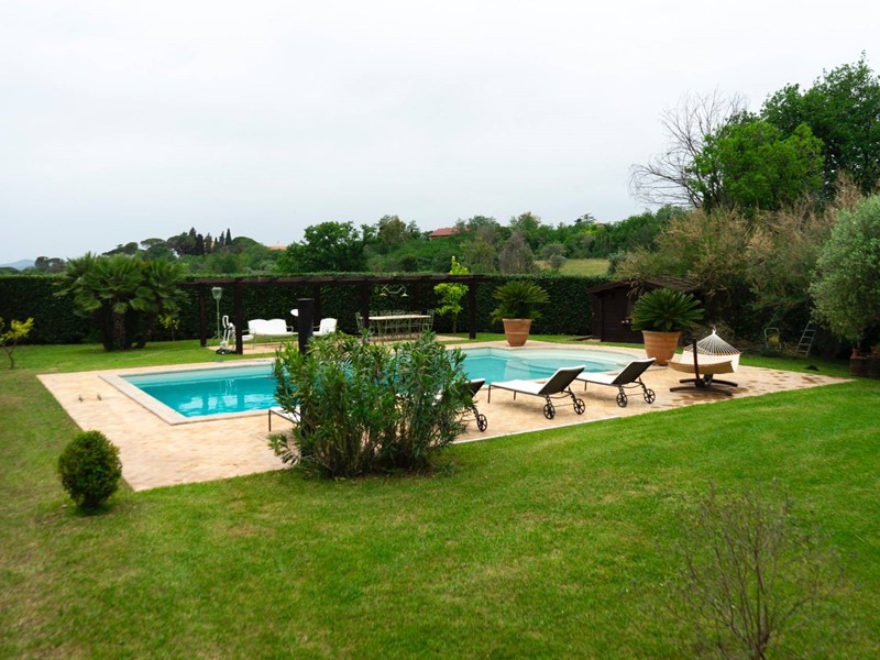 Questa villa è immersa in un vasto giardino paesaggistico con piscina, che offre spazi per il relax all'aperto e intrattenimento. Potrete godere di splendide viste panoramiche sulla campagna circostante e sperimentare un'autentica sensazione di serenità. Completano la proprietà un terreno di 6.000,00 mq, un' autorimessa, e una stalla perfette per gli amanti dei cavalli o per eventuali progetti agricoli.