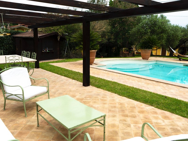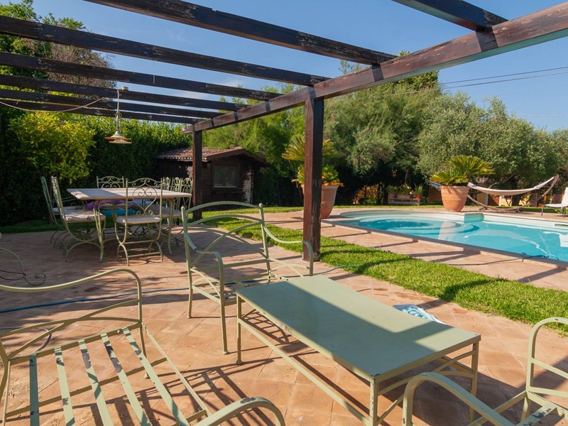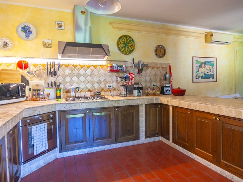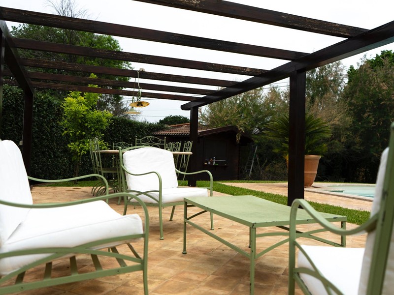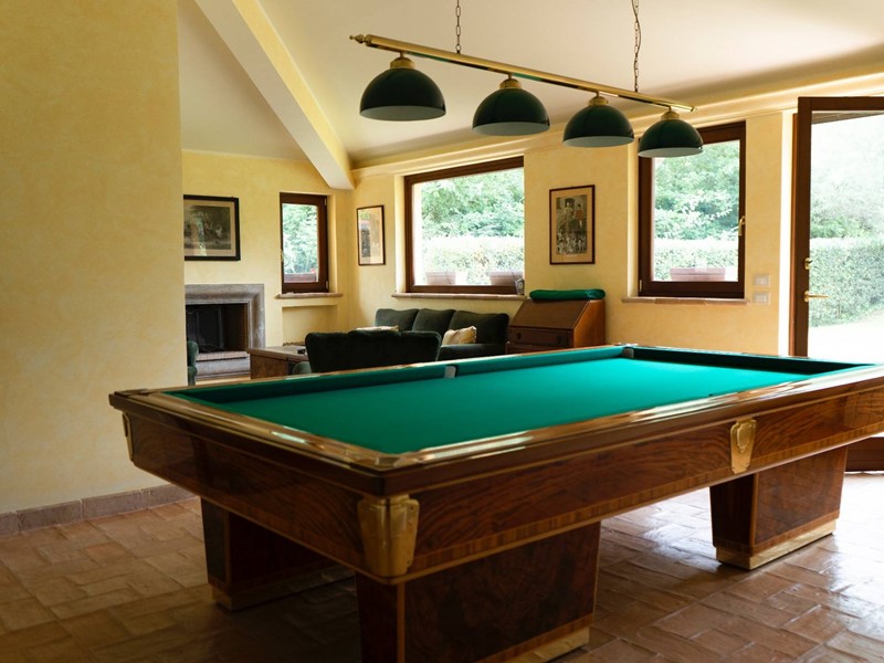 La villa di 416 mq è composta sta da un ampio salone di rappresentanza con camino che è il luogo ideale per riunire amici e familiari per serate indimenticabili, una cucina abitabile, 8 spaziose camere da letto e 6 bagni, ripostiglio/lavanderia e dispensa. Inoltre troviamo una Guest House che offre un ambiente separato di lusso, con una sala bar, un camino e un bagno, oltre a una camera da letto per gli ospiti e la Dependance con ingresso indipendente che aggiunge flessibilità e privacy allo spazio abitativo.