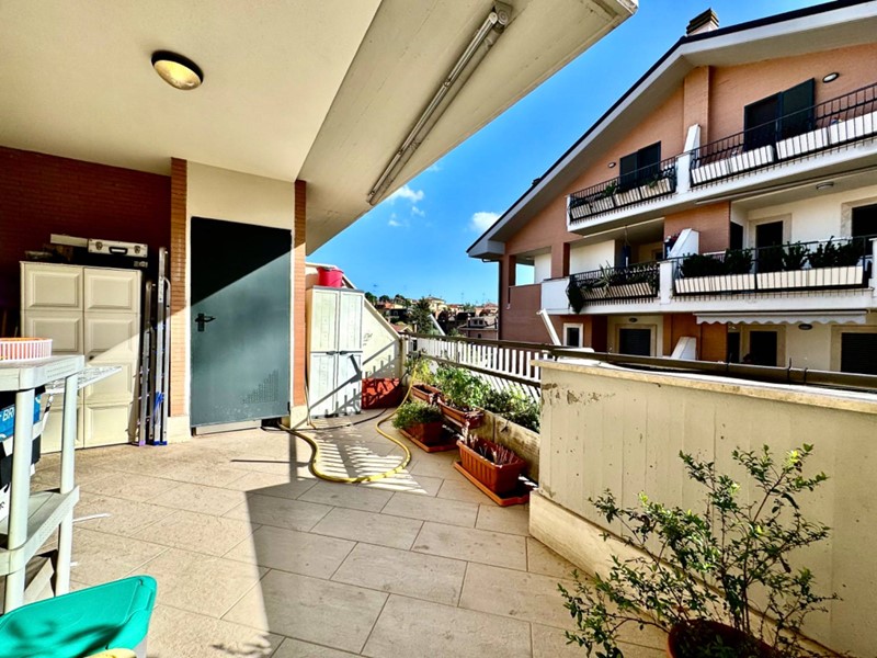 L'immobile si trova al secondo e terzo piano di una moderna palazzina rivestita in cortina ed ha un doppio ingresso. Internamente è composto da un ampio salone luminoso e accogliente, un cucinotto, tre camere da letto matrimoniali, doppi servizi entrambi con finestra, tre balconi, due comodi terrazzi utili per pranzi e cene all'aria aperta o per semplici momenti di relax. La casa è accessoriata dall'impianto di climatizzazione, dalle zanzariere su tutte le finestre e dalle tende da sole; inoltre l'appartamento è dotato di un pannello solare per la produzione di acqua calda sanitaria mentre il sistema fotovoltaico è a servizio delle parti comuni condominiali. Completano la proprietà una cantina, un posto auto e un box auto per chi vuole avere la tranquillità di parcheggiare l'auto al sicuro. Lo stabile è in una zona residenziale, ma allo stesso tempo nelle immediate vicinanze troviamo i principali impianti sportivi del Paese, le scuole di ogni grado, il capolinea del autobus (line che collega alla stazione FS e a Roma) e facilmente raggiungibile la tangenziale che collega la Nomentana alla Salaria, agevola gli spostamenti evitando il traffico del centro. Ideale per un nucleo familiare di 4/5 persone. Ape Classe A++.