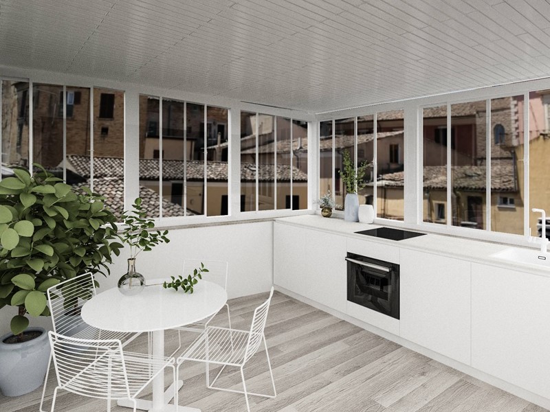 CENTRO STORICO - CHIETI, in piccolo stabile, all'interno dell'arco di Porta Pescara, esclusivo appartamento con terrazzo. L'immobile, interamente e finemente ristrutturato, è composto da ingresso, soggiorno con camino, grande cucina con accesso sul terrazzo coperto, n. 2 camere da letto , disimpegno/lavanderia e doppi servizi. L'appartamento è attualmente affittato ed arredato completamente con particolari di design.